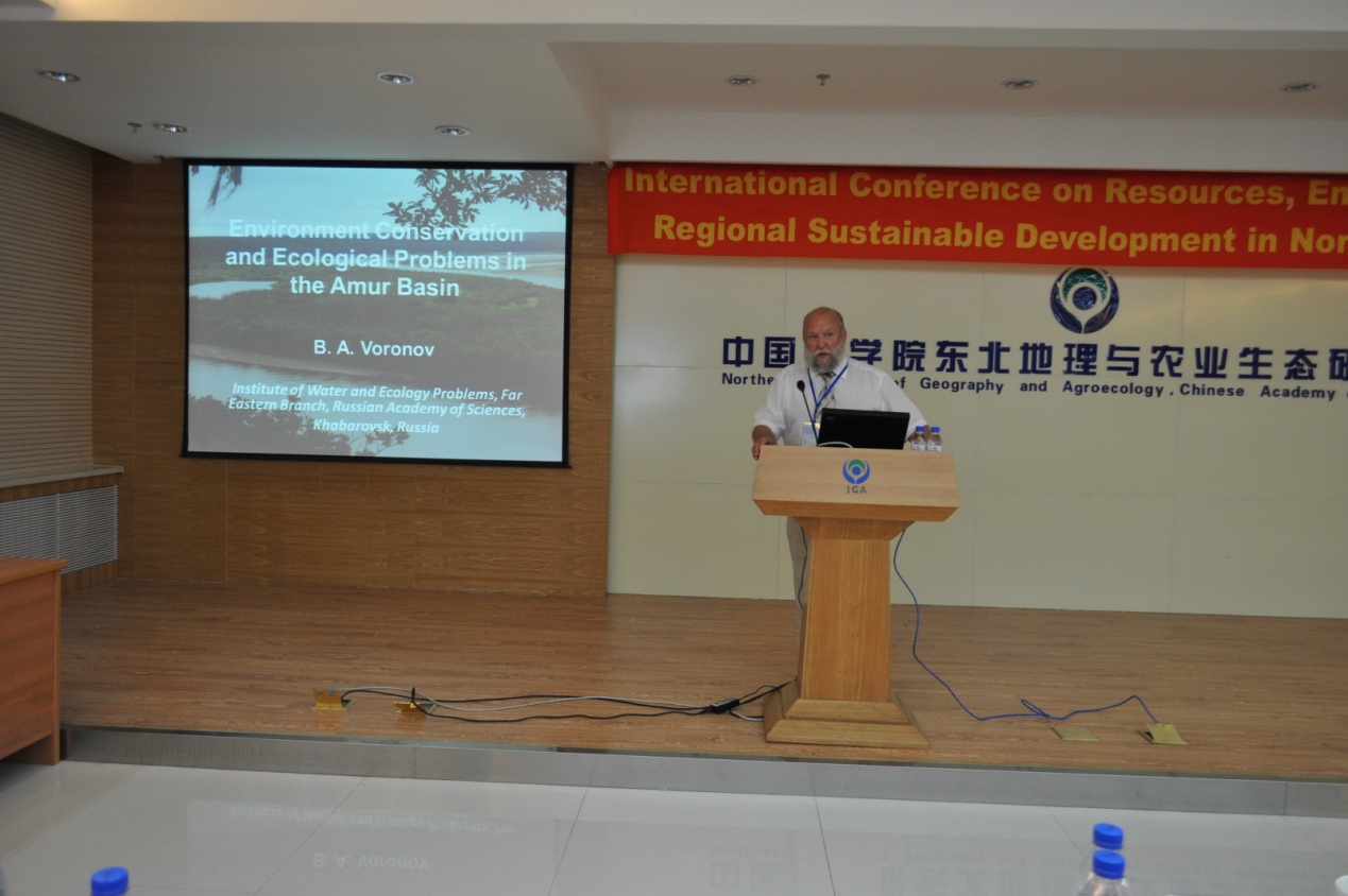 圖3 俄羅斯科學(xué)院通訊院士Boris A Voronov作“阿穆?tīng)柵璧丨h(huán)境保護(hù)與生態(tài)問(wèn)題”學(xué)術(shù)報(bào)告