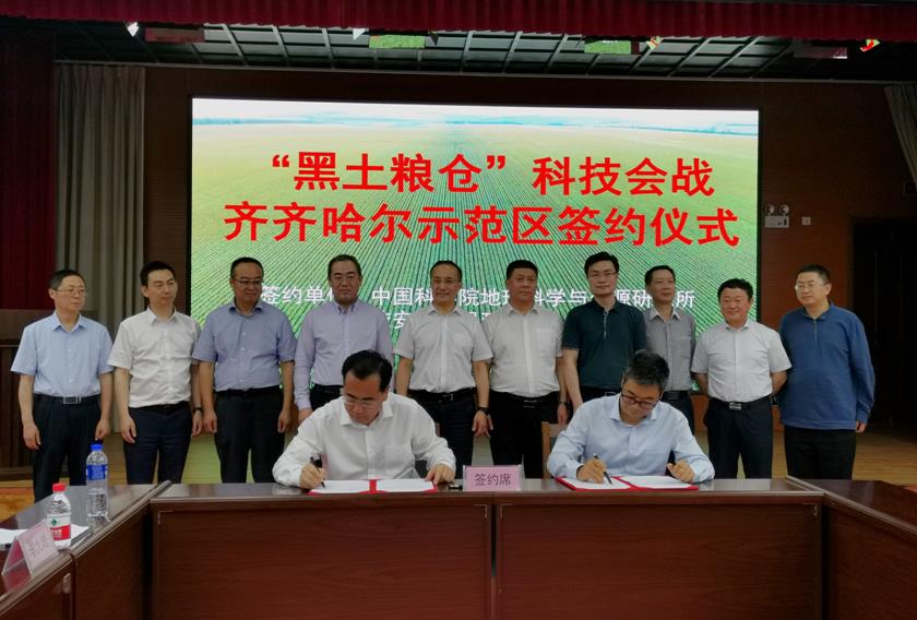 6月16日,張濤與齊齊哈爾市政府主要領(lǐng)導(dǎo)召開座談會并簽署示范區(qū)建設(shè)協(xié)議。齊齊哈爾市副市長李擁軍在致辭中說,多年來,中科院、黑龍江省農(nóng)科院對齊齊哈爾市黑土地保護與利用工作給予了大力支持和精心指導(dǎo),奠定了“黑土糧倉”科技會戰(zhàn)合作的堅實基礎(chǔ),齊齊哈爾市將以本次合作為契機,在黑土地保護利用關(guān)鍵技術(shù)等方面強化科研攻關(guān),重點在黑土健康調(diào)控與農(nóng)產(chǎn)品品質(zhì)創(chuàng)優(yōu)、黑土地保育增效技術(shù)、高寒黑土多源增碳增效技術(shù)、黑土地保護利用與鄉(xiāng)村振興有機融合、黑土糧倉全域定制模式創(chuàng)建與示范應(yīng)用五個方面開展模式攻關(guān),進一步加強溝通合作,共筑友誼金橋,共享合作碩果,共同保護好“耕地中的大熊貓”。