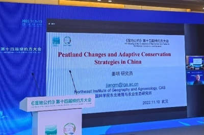 泥炭地碳儲量巨大,對于減緩氣候變化具有重要意義。中國始終把應對氣候變化、開展泥炭地保護管理視作自身可持續發展的內在要求和構建人類命運共同體的責任擔當。11月10日,在《濕地公約》第十四屆締約方大會期間,“泥炭地保護恢復研究與我國重要濕地成果發布”研討會成功召開。作為東道國系列重要活動之一,會議聚焦我國泥炭地保護的基礎理論及關鍵技術問題開展研討,旨在推動我國泥炭地學的理論體系構建和泥炭地恢復技術的快速發展,服務國際履約,助力實現“雙碳”戰略。會議同步進行了濕地領域重要成果的發布與推介。國家林業和草原局濕地管理司作為指導單位,由國家濕地研究中心和中國林業出版社聯合主辦,中國科學院東北地理與農業生態研究所、“一帶一路”國際科學組織聯盟(ANSO)國際濕地研究聯盟、地球觀測組織(GEO)承辦,會議采用線上線下相結合的方式,250余人參加了會議。