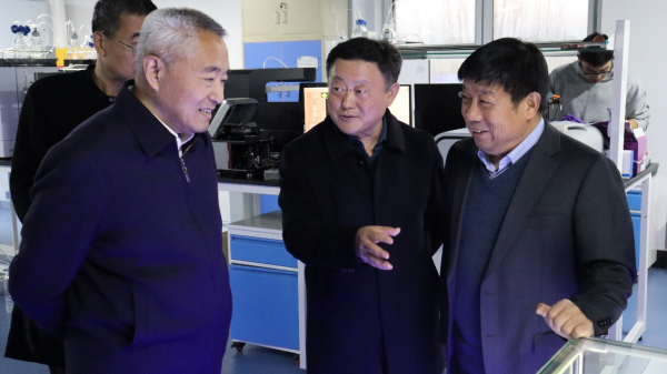 隨后,調研組前往東北亞種質資源研究中心,考察了大豆分子設計育種體系、耐鹽堿系列大豆新品種、高通量作物表型組平臺、大豆基因編輯技術以及大豆固相育種芯片研發等方面的工作進展。大豆分子設計育種重點實驗室主任馮獻忠等詳細介紹了中心在種質資源創制、智能育種平臺建設及新品種推廣應用等方面取得的成果。