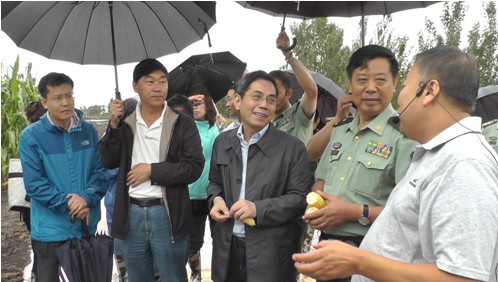 2013年8月22日,中國科學(xué)院副院長施爾畏,沈陽軍區(qū)聯(lián)勤部副部長王江等領(lǐng)導(dǎo)冒雨來到沈陽軍區(qū)老萊農(nóng)副業(yè)基地和雙山農(nóng)副業(yè)基地,視察了由中國科學(xué)院與沈陽軍區(qū)聯(lián)合實施的 “現(xiàn)代農(nóng)業(yè)示范項目”。領(lǐng)導(dǎo)們聽取了相關(guān)項目負責(zé)人的現(xiàn)場匯報,并與科研人員進行親切交流,...2013-08-23