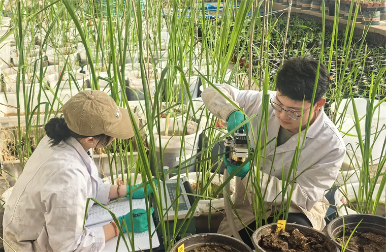 給各盆添水,測量葉長、葉寬、徑粗,逐一記錄……不知不覺間,已是上午10點(diǎn),溫室里的溫度逐漸攀升。姜文明擦了擦額上的汗水,搬出光合儀。“光照條件達(dá)到要求,可以測光合速率、蒸騰速率等指標(biāo)了。有了這些數(shù)據(jù),才能更全面科學(xué)地判斷長勢。”他說。