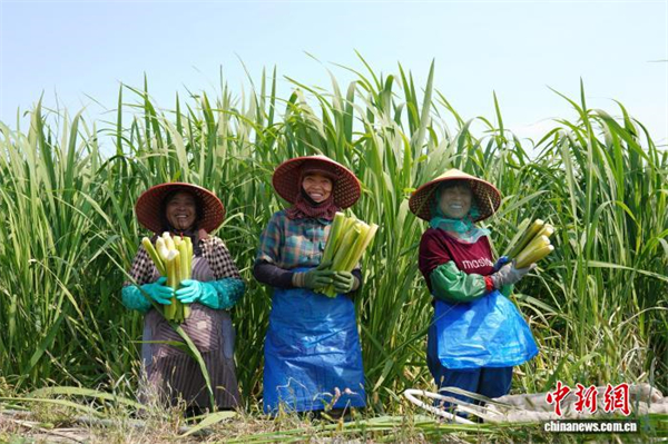 中新社吉林白城9月14日電 (記者 郭佳)白露時節,是吉林白城鎮賚茭白的收獲季。隨著氣溫降至25攝氏度以下,這種特色水生蔬菜集中結茭,搶先進入市場。相比中國南方尚未采收的茭白,地處東北松嫩平原和科爾沁草原交融匯聚地帶的鎮賚形成獨特的“收獲時差”,為鹽堿地農業利用開辟了新空間。