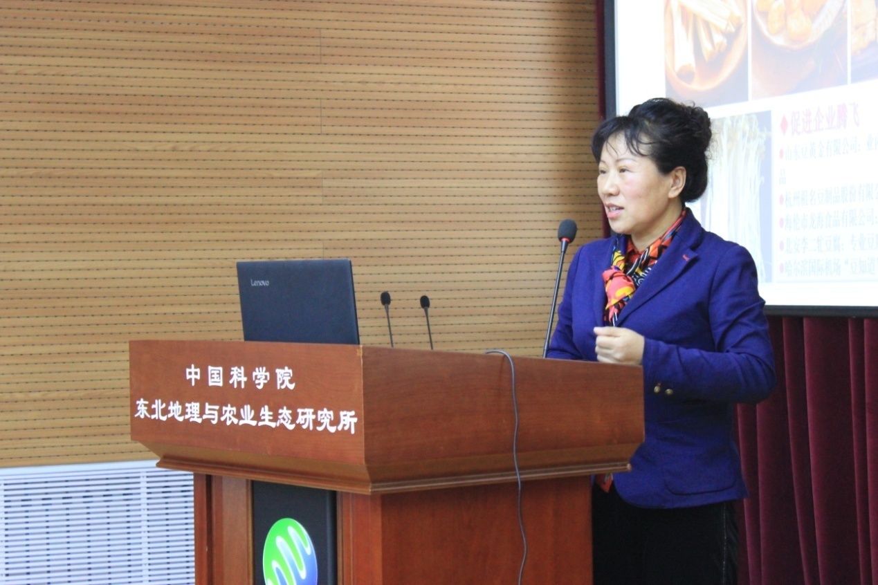 報告會上,李艷華結合自己三十來年科研經歷和人生感受,回顧了自己克服重重困難,專注大豆育種研究,終于培育出東生系列大豆新品種的科研過程。她懷著對家鄉父老鄉親的深厚情感,立志通過培育大豆新品種讓家鄉農民脫貧致富,在艱苦的科研條件下,幾十年如一日堅持在科研一線,終于培育出在黑龍江省第二、第三積溫帶大面積推廣應用的大豆品種,為地方經濟發展貢獻了力量,并取得巨大經濟和社會效益。李艷華以樸實的話語講述了她在田間授粉、試驗室選種、指導豆農、訪問企業、調研市場等一個個生動感人的故事,會場上響起了一陣陣熱烈的掌聲。她這種不忘初心、持之以恒、奉獻事業、淡泊名利的精神品質和樸素的家國情懷贏得了大家的尊敬和贊揚。