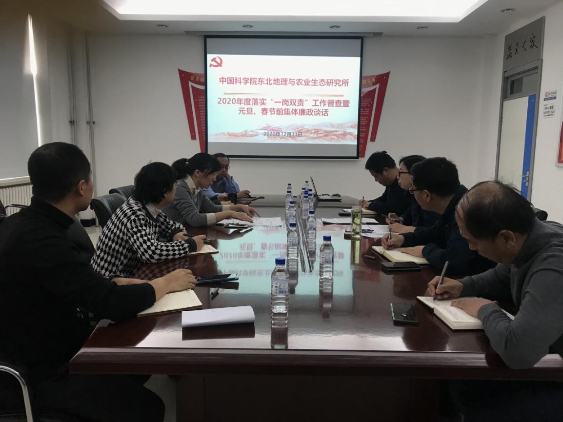 2020年12月31日,東北地理所召開2020年度落實“一崗雙責”工作督查暨元旦、春節前集體廉政談話會議,各部門負責人參加會議,黨委副書記、紀委書記王曉慧主持會議并進行節前集體廉政談話。