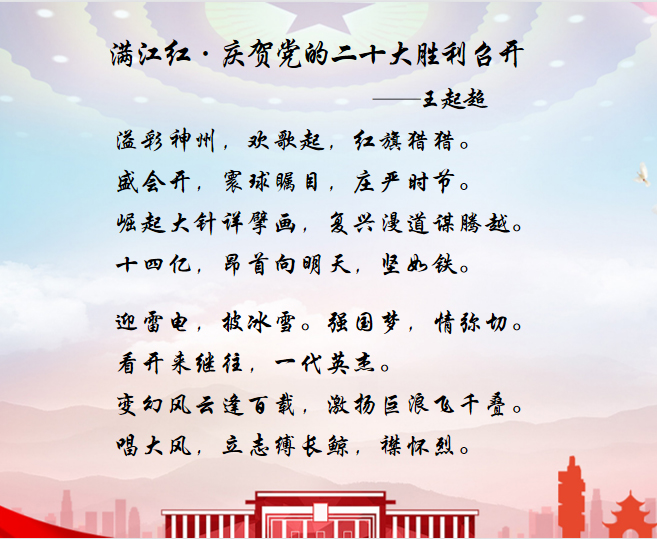 王起超即興賦詩《滿江紅·慶賀黨的二十大勝利召開》。