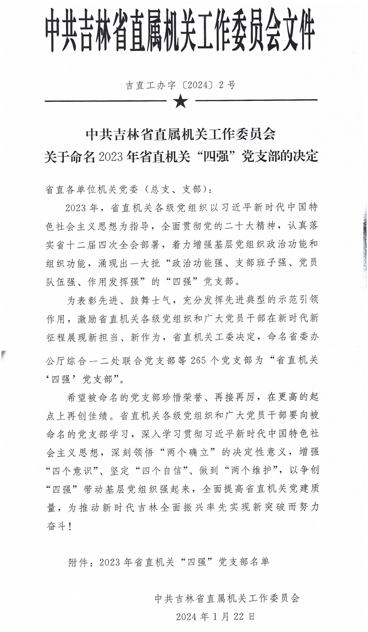 喜報(bào)|大豆第一黨支部獲得“吉林省直機(jī)關(guān)‘四強(qiáng)’黨支部”榮譽(yù)稱號(hào)