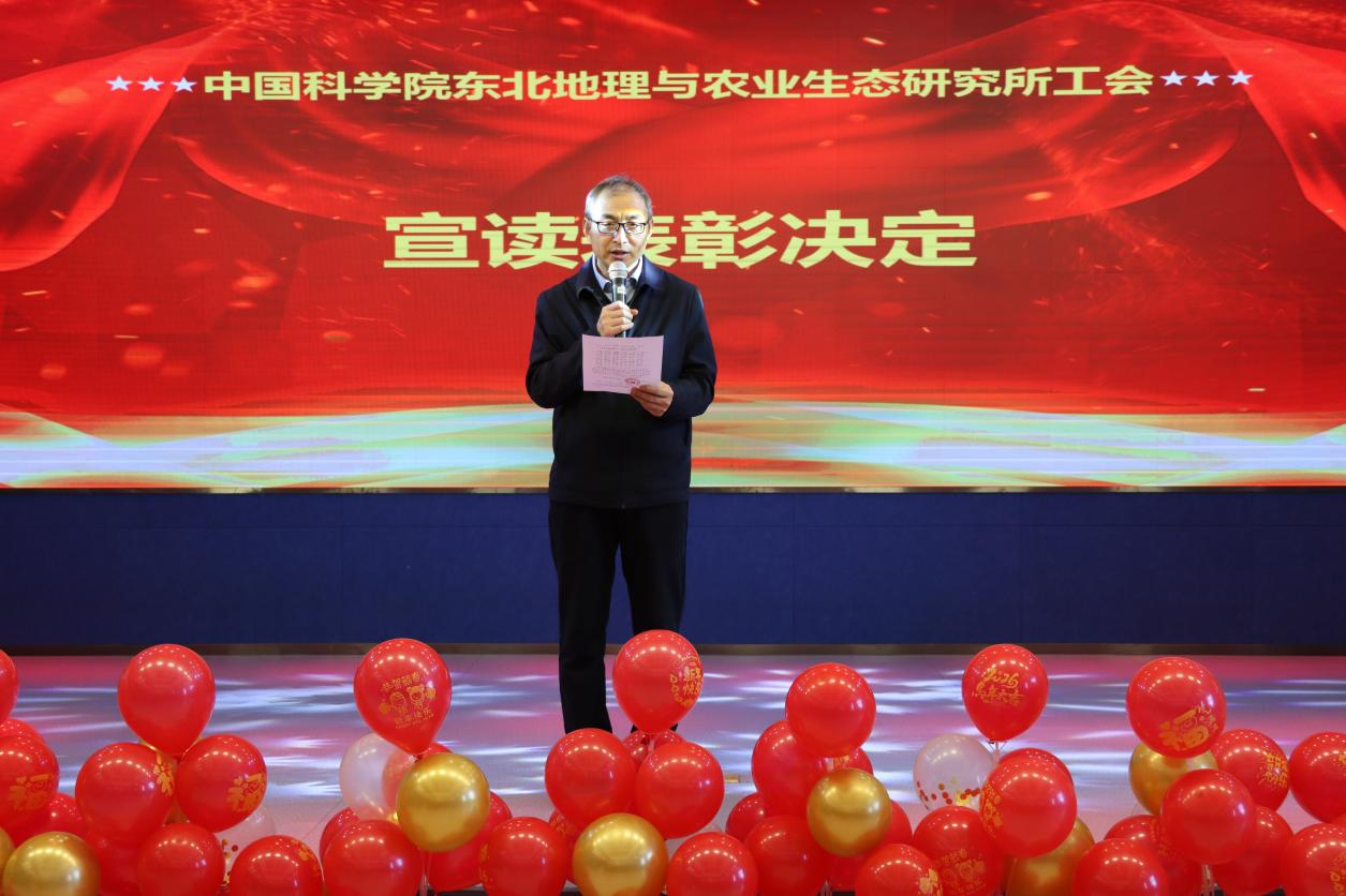 文藝演出在新入所職工表演的舞蹈《相親相愛》中拉開序幕,舞蹈喜慶歡快,寓意研究所全體職工、研究生在新的一年里,繼續(xù)“相親相愛、同心同行”。機關(guān)第一分工會帶來二重唱《陽光總在風雨后》,她們用深情的歌聲,祝愿每一位東地人在新的一年里,歷經(jīng)風雨終見彩虹,不斷向著科技制高點奮勇前行。濕地第一、第二分工會選送的朗誦《我們的征途是星辰大海》,深情訴說著東地人心懷家國、始終以服務(wù)國家重大需求為己任、不斷攻堅克難的初心。農(nóng)業(yè)第一分工會帶來的小合唱《重返十七歲》,他們用悠揚的歌聲與現(xiàn)場職工共同重溫青春的激情與夢想。哈爾濱分會場通過視頻帶來了他們的自創(chuàng)節(jié)目《大豆科研奮進曲》,歌聲激勵和鼓舞每一位科技工作者在科研道路上砥礪前行,奮發(fā)有為。聯(lián)歡會還特別邀請了我所實力派唱將、資深研究員馬延吉與新生代唱將、2024級碩士研究生馮唯源一展歌喉,他們深情演唱的《橄欖樹》《無名的人》兩首歌曲更是讓全場觀眾沉浸其中,一飽耳福。遙感第一、第二分工會帶來的舞蹈《手扶拖拉機斯基》歡樂上演,全場觀眾跟隨動感節(jié)奏感受他們的熱情與活力,大家在歡笑與律動中收獲更多輕松與快樂。區(qū)域發(fā)展分工會選送的小品《大話新聞2026》依舊作為經(jīng)典保留節(jié)目,他們用幽默打破常規(guī),用創(chuàng)意點亮舞臺。今年他們依舊不負眾望,把我們科研生活里的趣事、工作中的熱點、身邊的暖心瞬間“打包播報”,贏得觀眾的陣陣掌聲。研究生黨總支帶來的朗誦《烽火礪劍,山河傳薪》,用青春的聲音,講述科研傳承的故事,讓我們感受到科研精神代代相傳的力量!物業(yè)公司帶來的舞蹈《2026順順順》作為壓軸節(jié)目,用熱情的舞蹈表達對新年的祝福和對研究所美好未來的期待。在《難忘今宵》的歌聲中,所黨政班子成員與全體演職人員合影留念,聯(lián)歡會圓滿落下帷幕。