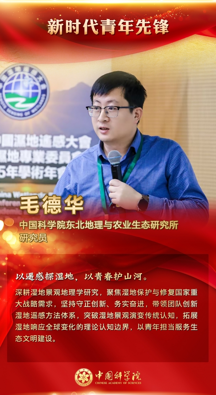 毛德華研究員深耕濕地景觀地理學研究,聚焦濕地保護與修復國家重大戰略需求,堅持守正創新、務實奮進,帶領團隊創新濕地遙感方法體系,突破濕地景觀演變傳統認知,拓展濕地響應全球變化的理論認知邊界,以青年擔當服務生態文明建設。