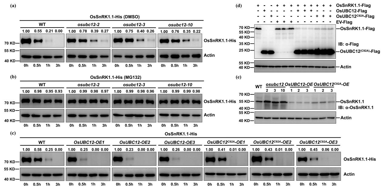 圖3 OsUBC12促進OsSnRK1.1的降解