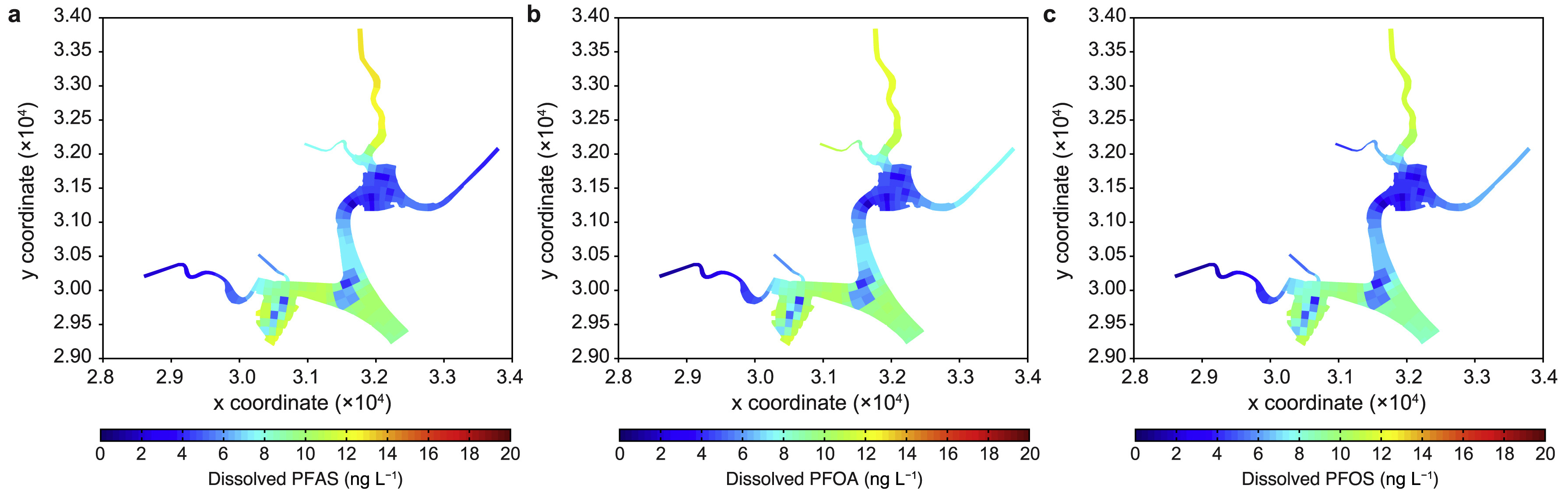 水環(huán)境中的新污染物問(wèn)題日益突出,其中抗生素耐藥性(AMR)和全氟及多氟烷基物質(zhì)(PFASs)作為代表性污染物,正對(duì)水生生態(tài)系統(tǒng)和公共健康構(gòu)成嚴(yán)重威脅。張敬杰研究員帶領(lǐng)研究團(tuán)隊(duì)通過(guò)將三維水動(dòng)力模型和水質(zhì)模型相結(jié)合,對(duì)水生生態(tài)系統(tǒng)中全氟和多氟烷基物質(zhì)(PFASs)的歸趨和遷移機(jī)制進(jìn)行研究。研究中,通過(guò)在新加坡的一個(gè)水庫(kù)中應(yīng)用該集成模型,結(jié)合了水文、水動(dòng)力和水質(zhì)過(guò)程,量化了包括全氟辛酸(PFOA)和全氟辛烷磺酸(PFOS)在內(nèi)的PFASs在水體、顆粒物和沉積物中的分布。研究結(jié)果表明,超過(guò)95%的PFASs存在于溶解相中,其次是吸附在有機(jī)顆粒(如腐殖質(zhì)1.0-3.5%)和浮游植物(1-2%)上的部分。風(fēng)險(xiǎn)評(píng)估顯示,PFOS和PFOA的風(fēng)險(xiǎn)商分別為<0.32和<0.00016,表明該水庫(kù)內(nèi)PFASs的風(fēng)險(xiǎn)水平可接受。尤其在應(yīng)對(duì)PFOA的風(fēng)險(xiǎn)方面,即使外部負(fù)荷增加十倍,水庫(kù)仍表現(xiàn)出顯著的緩沖能力。這項(xiàng)研究不僅可以增強(qiáng)對(duì)影響表面活性劑污染物歸趨和遷移機(jī)制的理解,還為未來(lái)的研究建立了一個(gè)框架,以探索如何主導(dǎo)環(huán)境因素減少水生生態(tài)系統(tǒng)中的新興污染物污染。