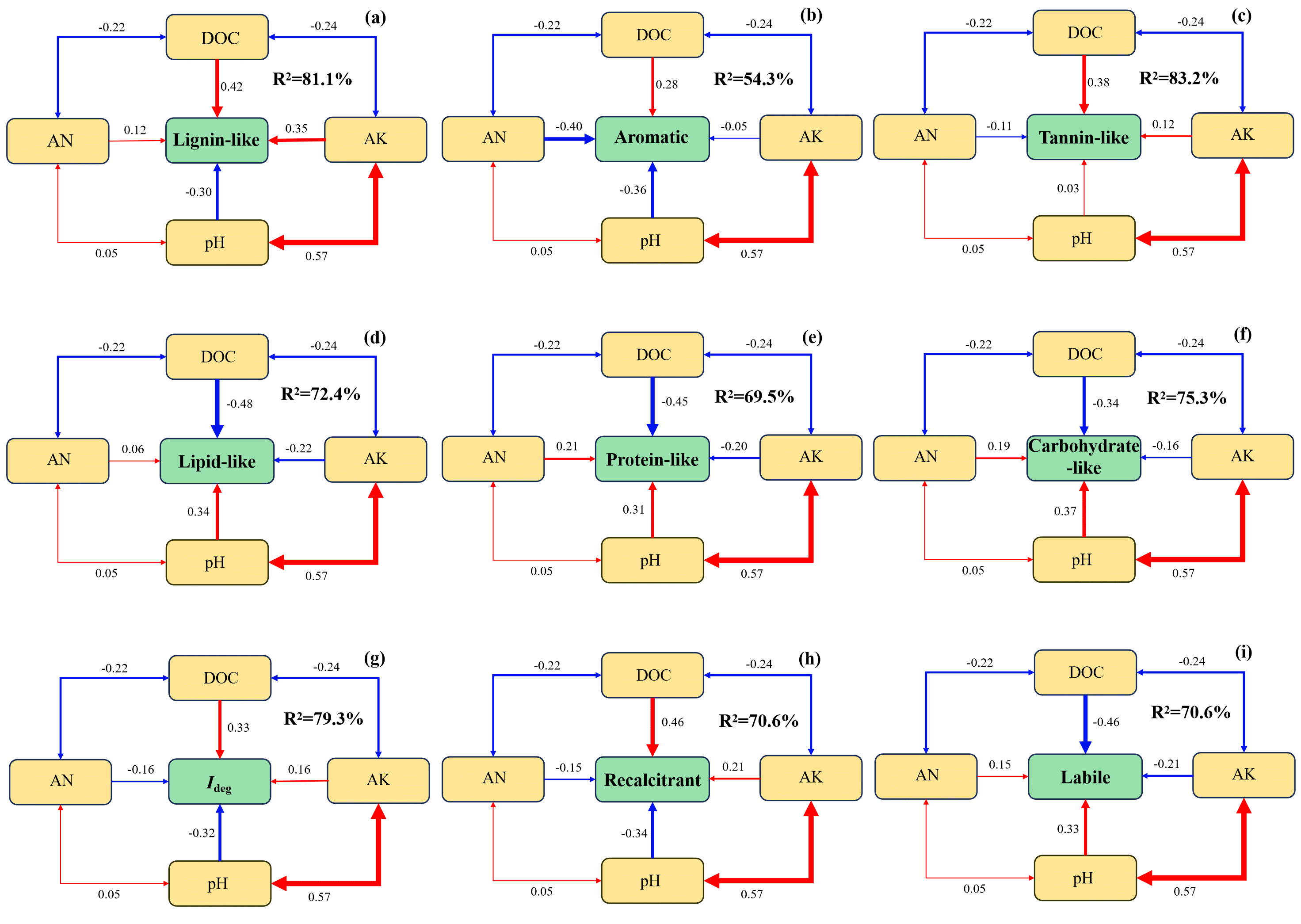 圖2 DOM組分與土壤理化因子的級聯(lián)關(guān)系