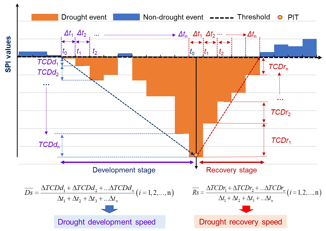 氣候變化引起干旱頻發(fā)和強度增強,并呈現(xiàn)爆發(fā)速度加快的趨勢,對全球水安全、糧食安全和生態(tài)安全產(chǎn)生深遠的影響。干旱演化速度在很大程度上決定了干旱的持續(xù)時間、強度、嚴重性及其致災性,因而成為近年來氣象水文學領(lǐng)域研究的熱點和前沿。然而,已有研究多關(guān)注單一干旱類型的時空演變特征及多類型干旱之間的傳播過程,缺少從干旱事件內(nèi)在過程(發(fā)展過程和恢復過程)視角對干旱演化速度的認識,給干旱監(jiān)測、風險預估與有效應對帶來諸多挑戰(zhàn)。