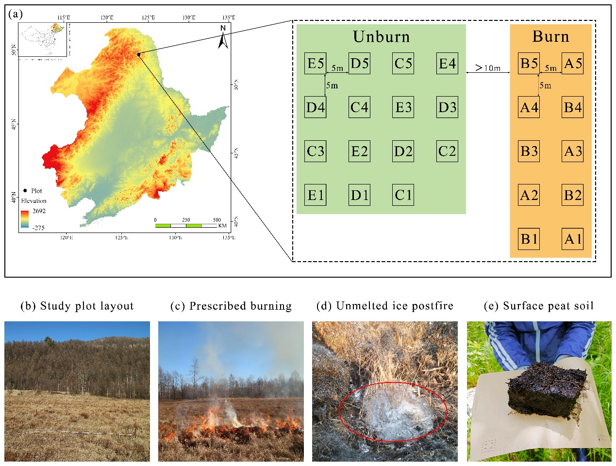 氣候變化和人類活動正在增加泥炭地野火的頻率,嚴重威脅多年凍土區泥炭地的碳庫。大興安嶺凍土泥炭地是我國唯一的高緯度多年凍土泥炭地,位于全球高緯度多年凍土區的最南端,對氣候變化具有高度敏感性。該地區泥炭地與森林生態系統交錯分布,在林火頻發的大興安嶺地區具有重要生態功能。作為林緣部位的重要生態系統,大興安嶺泥炭地在區域林火防控中發揮著關鍵作用。目前,大興安嶺多年凍土區林緣泥炭地火管理已成為森林防火的重要手段,并由當地林業部門每年秋季對區內林緣泥炭地實施計劃火燒。雖然計劃火燒對防控森林火災效果顯著,然而計劃火燒也通過消耗地表枯落物和產生熱解碳對泥炭地的碳庫產生影響,其影響過程和潛在機制亟待評估。