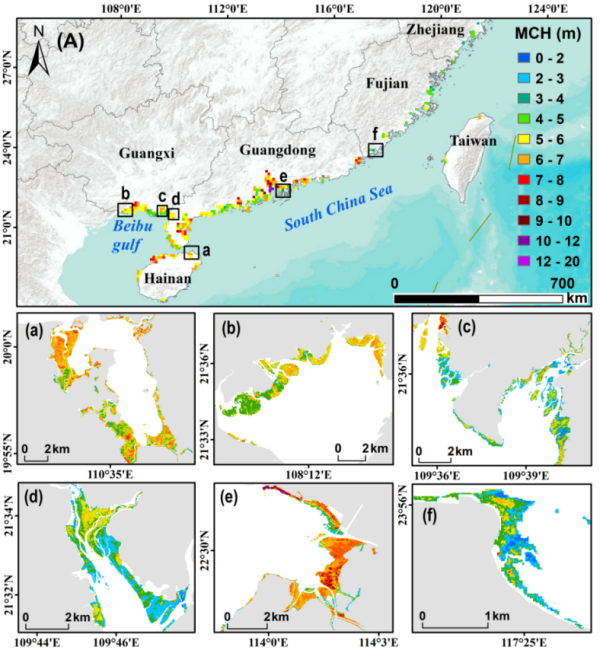 東北地理所完成10米空間分辨率中國濱海紅樹林冠層高度遙感反演