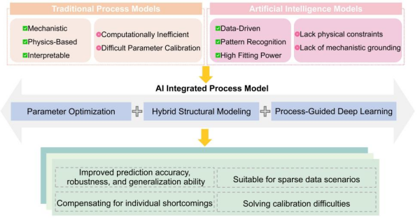 研究系統梳理了AI在水質監測、預測與管理中的關鍵應用進展。AI算法不僅能夠輔助傳感器實現動態數據分析、異常識別與自動補償,還能結合遙感與無人平臺拓展監測空間維度,提升整體系統穩定性與時效性。在水質預測方面,團隊總結了支持向量機(SVM)、隨機森林(RF)、長短期記憶網絡(LSTM)等模型的應用表現,并強調“過程引導型人工智能”作為新興趨勢,即通過耦合AI模型與水環境過程模型(PBM),實現物理一致性與預測性能的雙重優化,特別適用于復雜水體系統或數據稀疏區域。