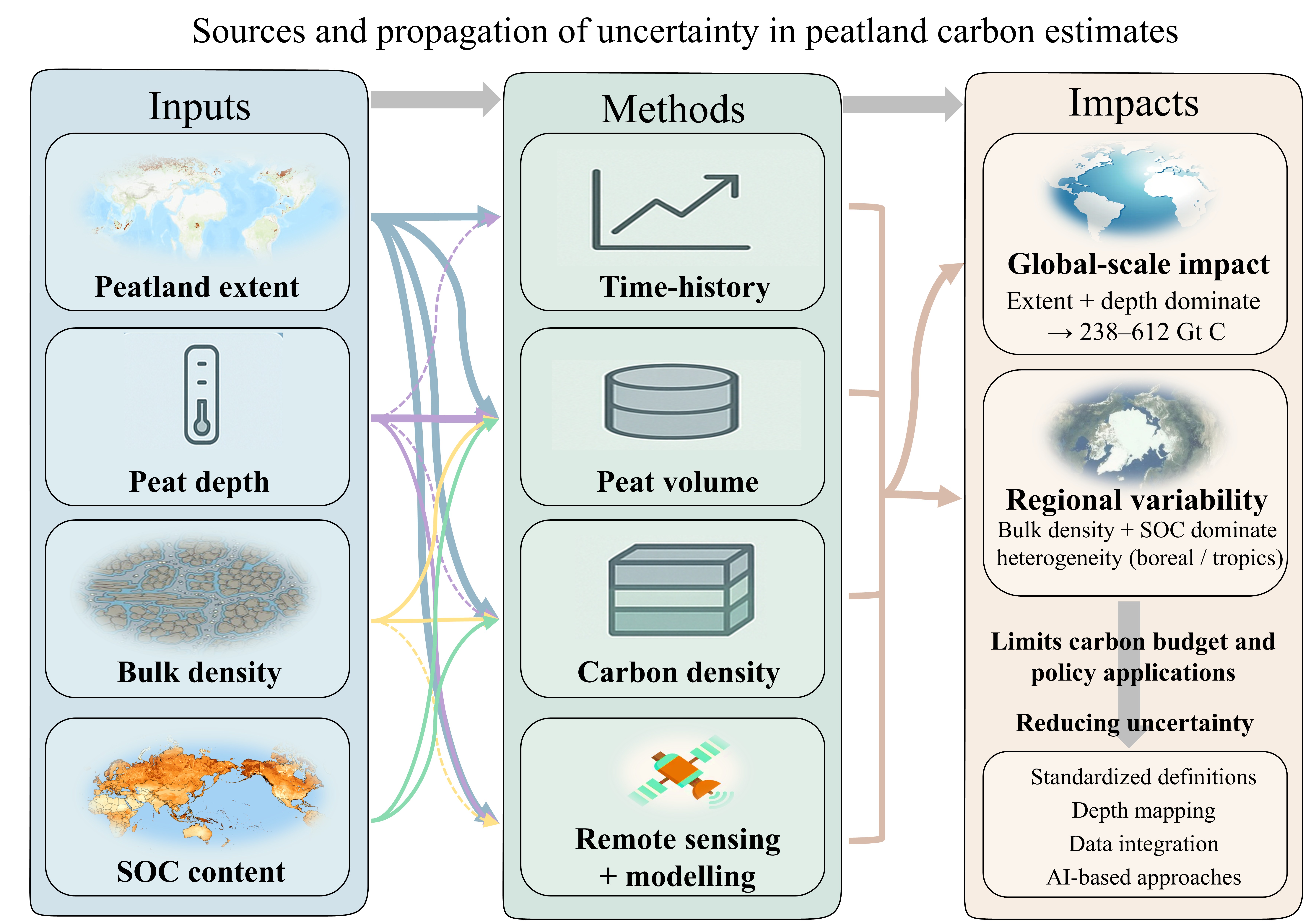 圖1 全球泥炭地碳庫估算中的不確定性路徑