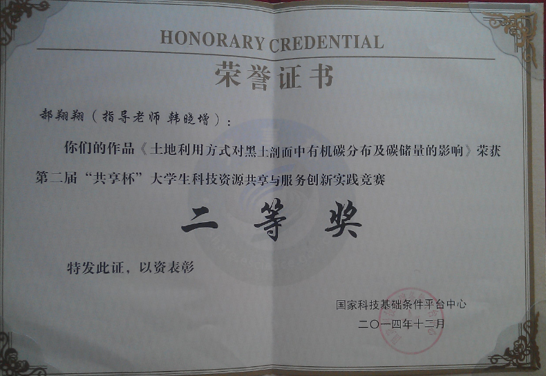我所郝翔翔獲得第二屆“共享杯”大學(xué)生科技資源共享與創(chuàng)新實(shí)踐競(jìng)賽二等獎(jiǎng)