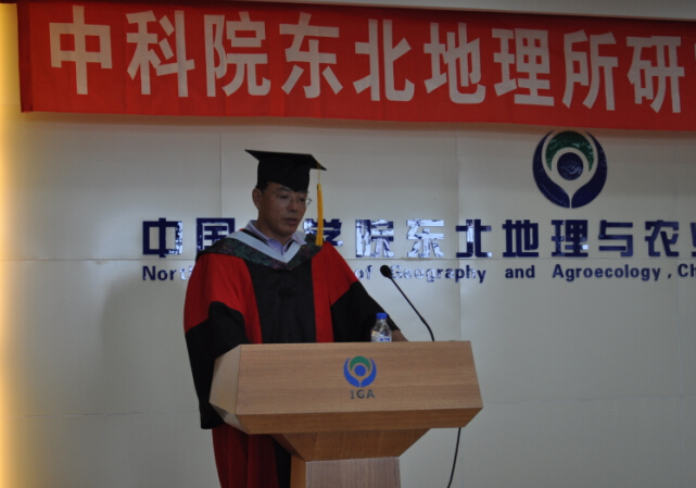 張樹文研究員代表研究生導師在畢業(yè)典禮上發(fā)言。作為研究所資深的優(yōu)秀導師,張樹文研究員培育了更多優(yōu)秀的學生,他嚴謹?shù)目蒲凶黠L和求實進取的工作態(tài)度,深深的影響了同學們。他對畢業(yè)生們的叮囑和期盼,道出了所有導師的心聲。恩師如父,他們更多的是盼望著學生們能走的更遠,飛的更高!