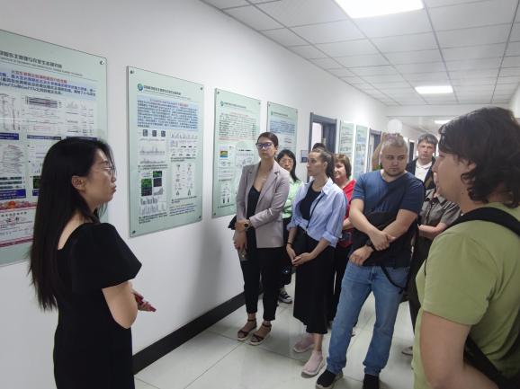 ????俄羅斯專家一行首先參觀了東北地理所所情長(zhǎng)廊,李娜介紹了研究所的發(fā)展歷史、基本概況、科研項(xiàng)目、人才培養(yǎng)和科研平臺(tái)建設(shè)等情況。俄羅斯專家還參觀了各實(shí)驗(yàn)室,李艷華正高級(jí)工程師介紹了“東生”系列大豆品種選育、推廣應(yīng)用和成果轉(zhuǎn)化情況;孟凡立研究員著重介紹了大豆全基因組復(fù)制后順式調(diào)控序列重塑在重復(fù)基因轉(zhuǎn)錄分化中的作用;卜慶云研究員介紹了高緯度地區(qū)水稻抽穗期基因的鑒定與育種應(yīng)用工作;翟紅研究員介紹了研究所在大豆光周期研究上取得的階段性進(jìn)展。