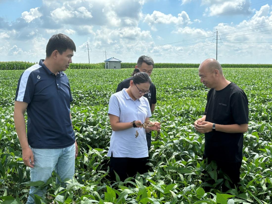 當(dāng)前東北春大豆正處于產(chǎn)量形成的關(guān)鍵時期,為了積極應(yīng)對未來可能出現(xiàn)的氣象不利條件,在農(nóng)業(yè)農(nóng)村部總體部署下,7月30日,國家大豆產(chǎn)業(yè)技術(shù)體系海倫綜合試驗(yàn)站首席專家鄒文秀研究員聯(lián)合東北早熟品種改良崗位科學(xué)家韓英鵬教授和巴彥縣農(nóng)業(yè)技術(shù)推廣中心相關(guān)科技人員深入巴彥縣巴彥港鎮(zhèn)開展“抓秋田抗災(zāi)害奪秋糧”科技支撐服務(wù),對田間土壤含水量、大豆長勢、病蟲草害發(fā)生風(fēng)險等進(jìn)行調(diào)研,并提出“抓秋田抗災(zāi)害奪秋糧”技術(shù)指導(dǎo)方案。