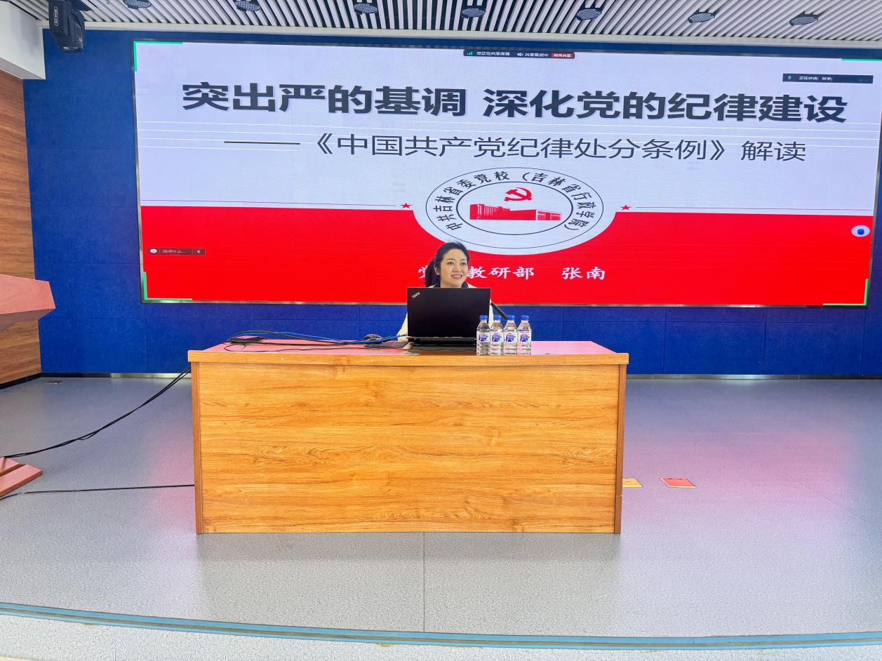 中共吉林省委黨校黨建教研部副主任張南副教授以《突出嚴的基調,深化黨的紀律建設》為題作報告,系統闡述了《中國共產黨紀律處分條例》主要內容,詳細解讀了新增和修訂的條款。報告具有很強的針對性和指導性,對于幫助紀檢委員理解把握《條例》的內涵要義以及今后學好、用好《條例》,自覺增強黨性修養,錘煉紀律作風有著重要的作用。
