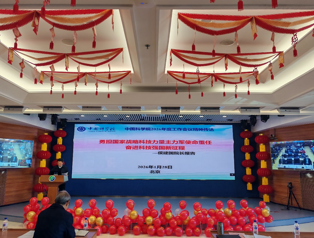 1月30日,東北地理所召開專題會議,傳達學習中國科學院2026年度工作會議精神。所長姜明作傳達報告,所領(lǐng)導班子成員、黨委委員、紀委委員、學術(shù)委員會委員、職代會代表、中層領(lǐng)導人員、副高級及以上專業(yè)技術(shù)人員、黨支部書記、機關(guān)職能部門工作人員等200余人參加會議。