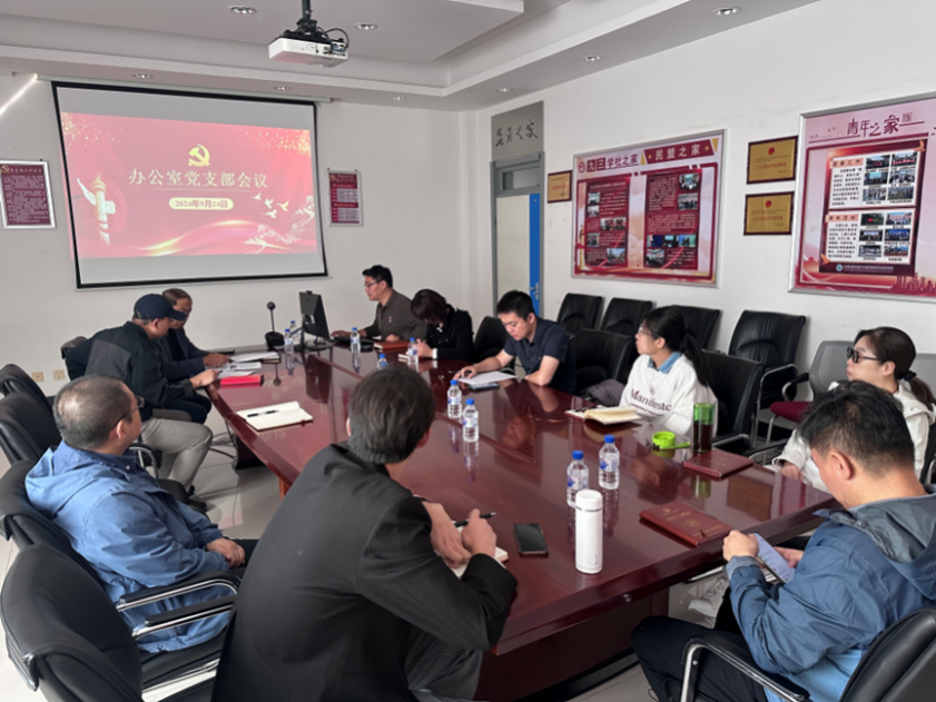 9月24日,辦公室黨支部在綜合樓414會議室開展“大力弘揚科學家精神 努力搶占科技制高點”主題黨日活動?;顒佑牲h支部書記王明全主持。